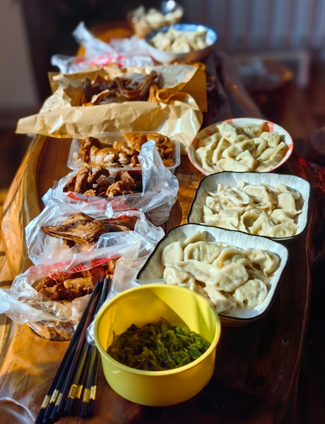 吃饺子的场面既热闹又壮观。洋溢着无比的温馨。吃的过程中大家还玩起了“比谁吃得多、吃得快”的游戏。有的人刚吃到一个甜饺子正乐着呢、吃到的下一个饺子却是辣的。还有更特别的皮里竟包着面疙瘩让人哭笑不得。