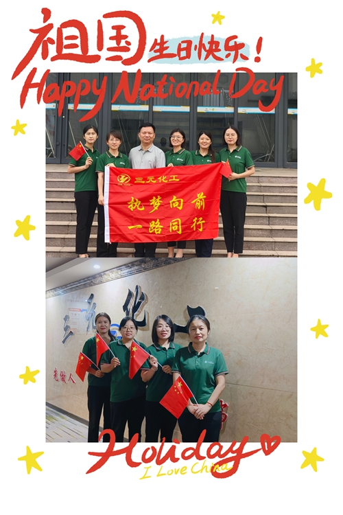 金秋送爽,丹桂飘香,在这满溢丰收喜悦的季节里,我们迎来了伟大祖国的华诞。国庆,如同一座熠熠生辉的灯塔,照亮了中华民族前行的道路,也点燃了济宁市三元化工科技有限公司每一位员工心中的爱国热情。